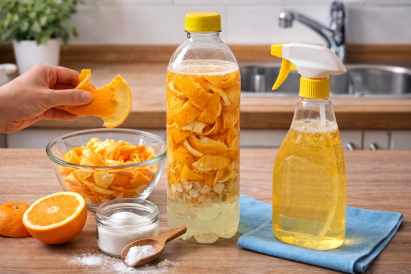 Раньше я просто отправляла апельсиновые корки в мусор, а теперь собираю их специально. Оказалось, что из них можно сделать простое и рабочее средство для кухни — без резкого запаха и агрессивной «химии». Цедра апельсина содержит эфирные масла, которые хорошо растворяют жир и освежают поверхности. В сочетании с обычной содой получается натуральный очиститель, который справляется с повседневной грязью не хуже магазинных средств.