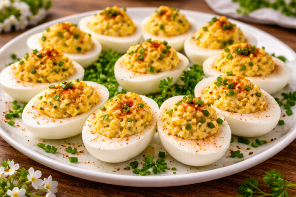 Это классические Gefüllte Eier (фаршированные яйца) — нежные яйца с пикантной начинкой, которые на праздничном столе в Германии исчезают одними из первых.